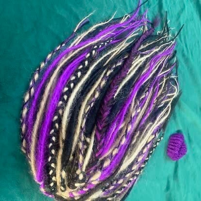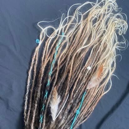 Prachtige klem met lichtgewicht dreads & curly locks in blond tinten met bruine accentjes. extra decoratie is mogelijk tegen meerprijs